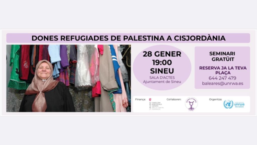 Demà la Sala d’Actes de l’ajuntament acollirà un seminari sota el títol “Dones refugiades a Palestina i Cisjordània”, amb la col·laboració de Dones d’Arrel. Les inscripcions s’han de fer a baleares@unrwa.es o al 644 247 479.