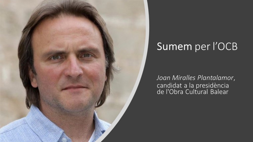 La candidatura que encapçal es presenta amb la humilitat i el respecte que ens mereixen els nostres predecessors i el renom de la institució i amb el convenciment que l’OCB ha de ser la casa comuna i el punt de trobada de tots els que estimam Mallorca, les Illes Balears i els elements culturals que ens defineixen. Avui, com fa 60 anys, llengua, cultura i país han de ser els pilars sobre els quals centrem la nostra tasca. Per tant, tothom que comparteixi aquests valors s’ha de sentir convidat a participar-hi, independentment, de la seva ideologia, lloc de naixement o llengua materna. En definitiva, volem reforçar un projecte centrat en les necessitats de les Illes Balears, oferir una gestió eficaç, transparent i participativa però, sobretot, guanyar-nos la confiança dels socis i de la ciutadania.
