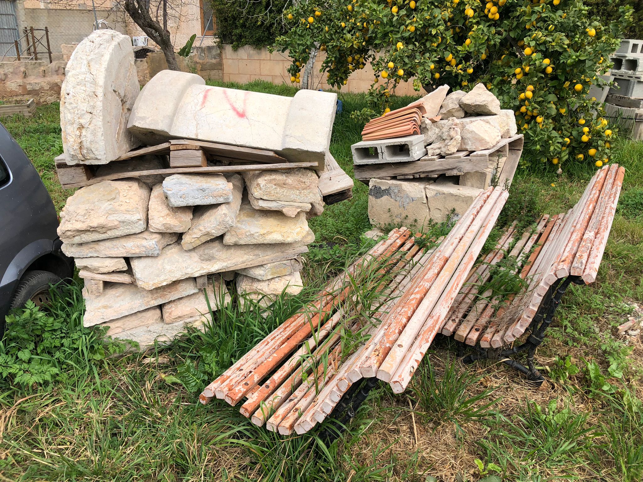 El solar adjacent a Sa Quintana i de titularitat pública s’ha convertit en un abocador municipal, on s’hi dipositen tot tipus de residus: cotxes, material de cautxú que caldria ser reciclat, asfalt, fibrociment, les peces del cadafal i molts més residus.