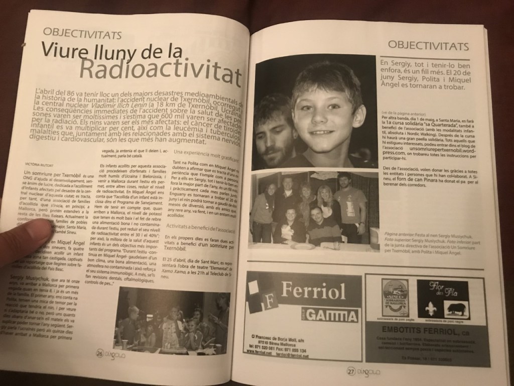 Tanmateix, sí que hi ha sineuers que tenen una certa connexió amb el país de l’Europa de l’Est. Així, Carme Sancho, és membre de l’associació ‘Un Somriure per Txernòbil’. Periòdicament acullen una nena ucraïnesa, que ve a passar un temps a Mallorca. No és la primera i, de fet, en la DíNGOLA en paper de l’abril del 2014 (DíNGOLA núm. 13) ja publicàrem un article sobre l’acollida per part de sineuers d’al·lots procedents d’aquella zona.