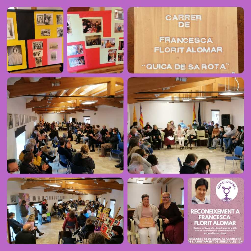 Prop de cent persones es reuniren ahir a migdia pel Reconeixement a Francesca Florit, Quica de sa Rota. L’acte havia estat organitzat per Dones d’Arrel i es va haver de fet a la sala d’actes per culpa de la pluja; l’espai era ple de gom a gom de persones sineueres i altres vengudes de fora. Dia 8 de març, Dia de la Dona, l’associació va fer la sol·licitud oficial per a dedicar-li un carrer; serà el primer que hi hagi al poble amb nom de dona.
