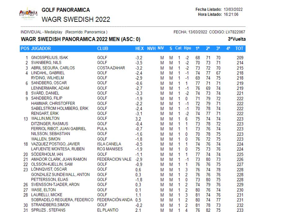Aquest passat cap de setmana s’ha disputat al Panorámica Club de Golf de Castelló el Warg Swedish, un torneig internacional de golf amb un altíssim nivell.
