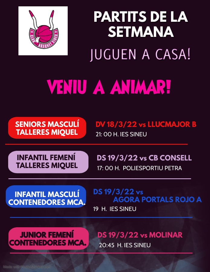També perilla la jornada de demà dissabte ja que, a la tarda, hi ha programats tres partits de lliga de les categories infantil femení, infantil masculí i júnior femení.