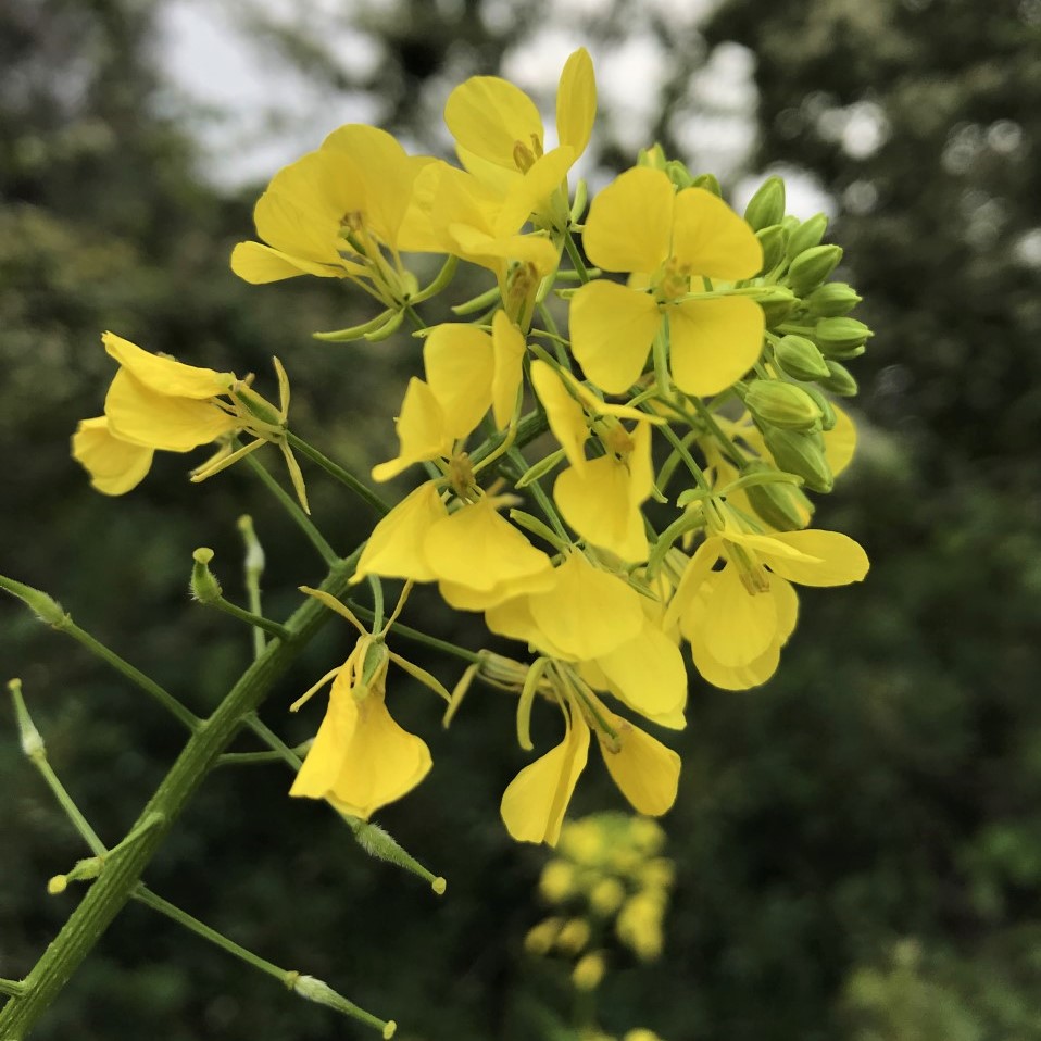 Les flors majoritàries que ara trobam a qualsevol camí de Sineu, o en les finques on porten aquests camins, si no han estat llaurades fa mesos, són les crucíferes (o brassicàcies), com la ravenissa groga (Sinapis arvensis) [arvense = que creix dins els sembrats], i altres mostasses i naps (Brassica, Raphanus, Diplotaxis…), totes amb flors molt semblants, de quatre pètals distribuïts en forma de creu [crucíferes = creu], grocs, o blancs amb petites ratlles liles.