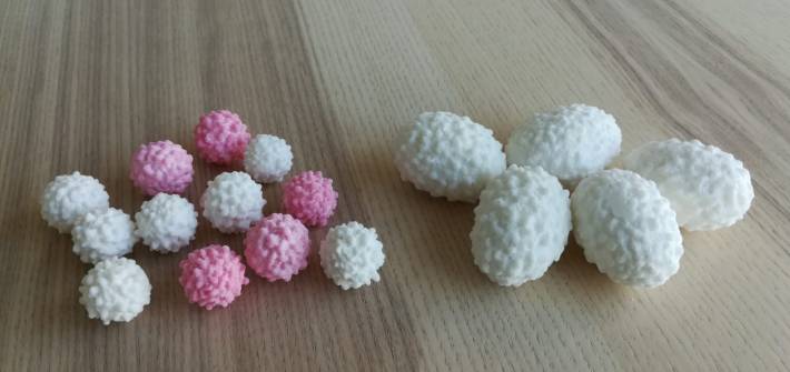 I és que durant la Setmana Santa hi ha una llepolia que no pot faltar a les processons de Mallorca. Són els confits de móra (per la similitud amb el fruit del romeguer, compost de nombroses drupetes negres). Els confits petits, amb un nucli de llavor d’anís, i el grossos, amb un bessó d’ametla torrat, estan envoltats d’una capa de sucre fi endurit, amb el rissat exterior que els caracteritza, de color blanc o rosat si li han afegit colorant.