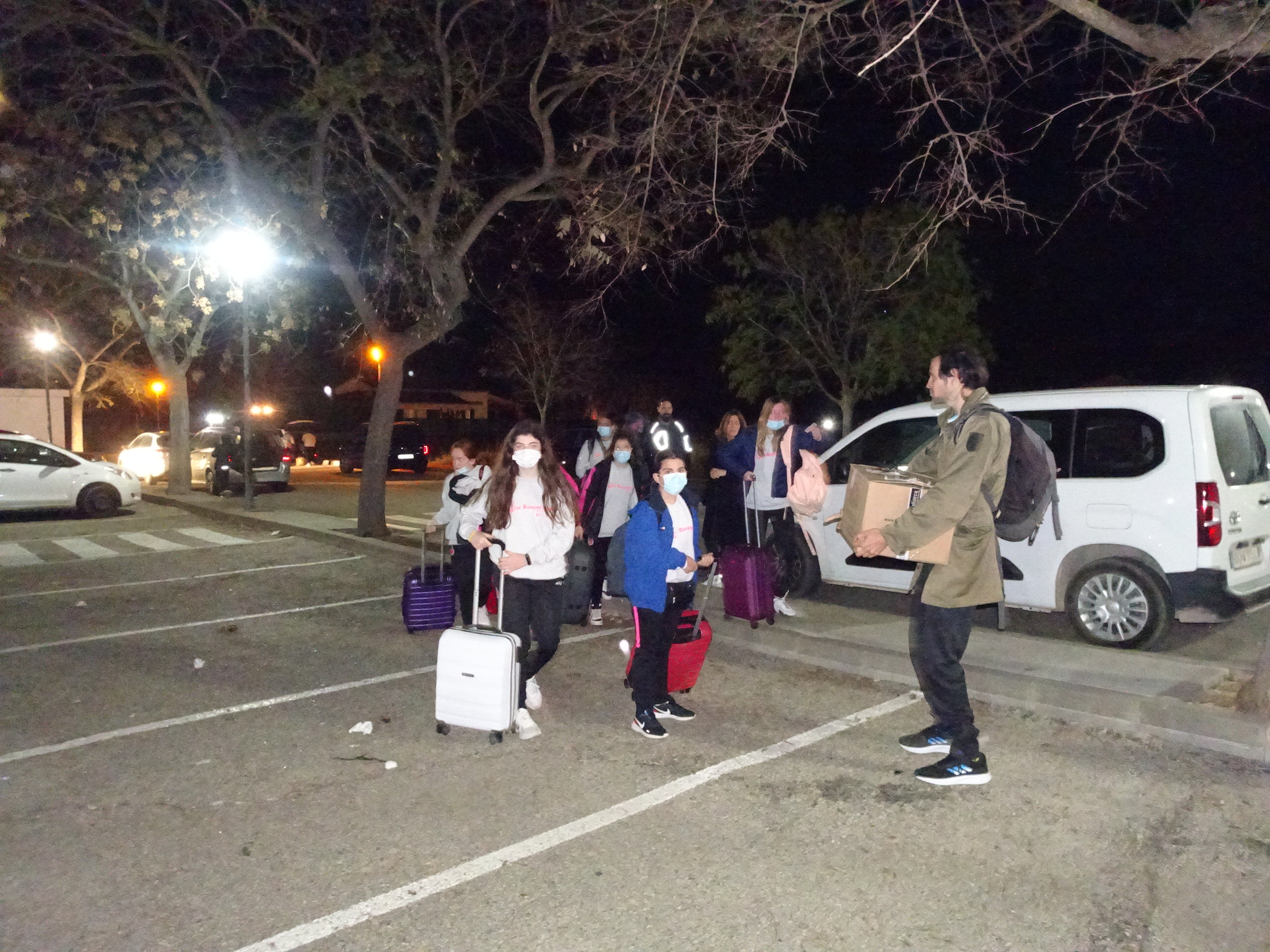 A primera hora d’aquest matí, a les 6,00 h, el gruix de l’expedició del Bàsquet Sineu es concentrava a l’aparcament de l’Institut per a anar en bus a l’estació marítima d’Alcúdia amb destinació a Ciutadella.