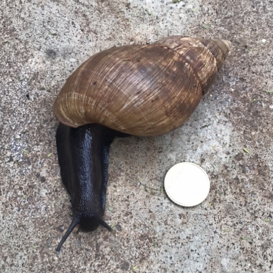 El nombre d’espècies de cargols és d’unes 75.000. N’hi ha d’una mida molt petita, mil·límetres, i n’hi ha de molt grossos, com ara aquest de la foto, el caragol de terra africà (Achatina fulica) que pot arribar als 20 cm –vegeu l’exemplar de la foto, fotografiat per l’autor d’aquest article, amb una moneda d’1€ al costat, fa dues setmanes a Tanzània–.