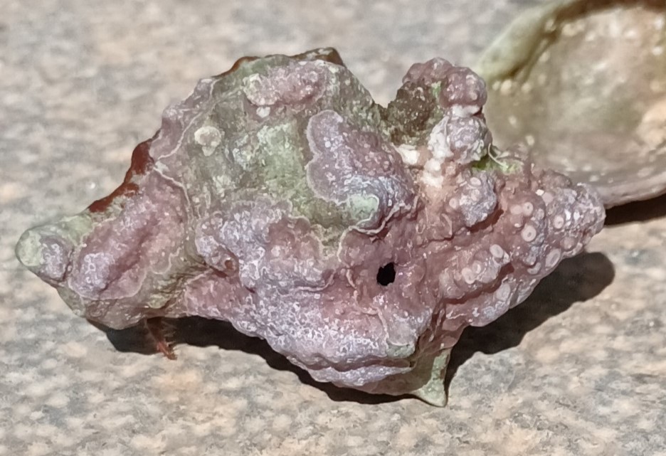 Aquestes imatges són un bon exemple del que acabo d’explicar. Un corn que ha estat atacat per un altra mol·lusc, inclús podria ser de la mateixa espècie. Com ho sé? Idò el forat que té a la part frontal de la imatge, fet per la secreció àcida alliberada per l’agressor per dissoldre el carbonat càlcic de la closca i xuclar-ne el contingut. La perfecció del forat, sembla realitzat per una barrina, i l’atac fet a traïció, probablement perquè de front no hauria tingut èxit, completen l’expedient del crim. Però la seqüència continuà perquè dintre s’instal·là un ermità, a més a més completament camuflat per les algues de diferents colors que ha colonitzat la closca. No patiu, després de la rapidíssima sessió fotogràfica el corns-ermitans foren retornats, sans i estalvis, al mar.