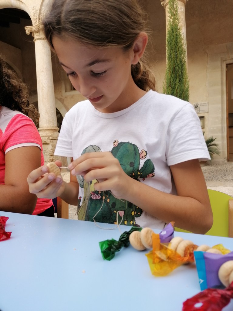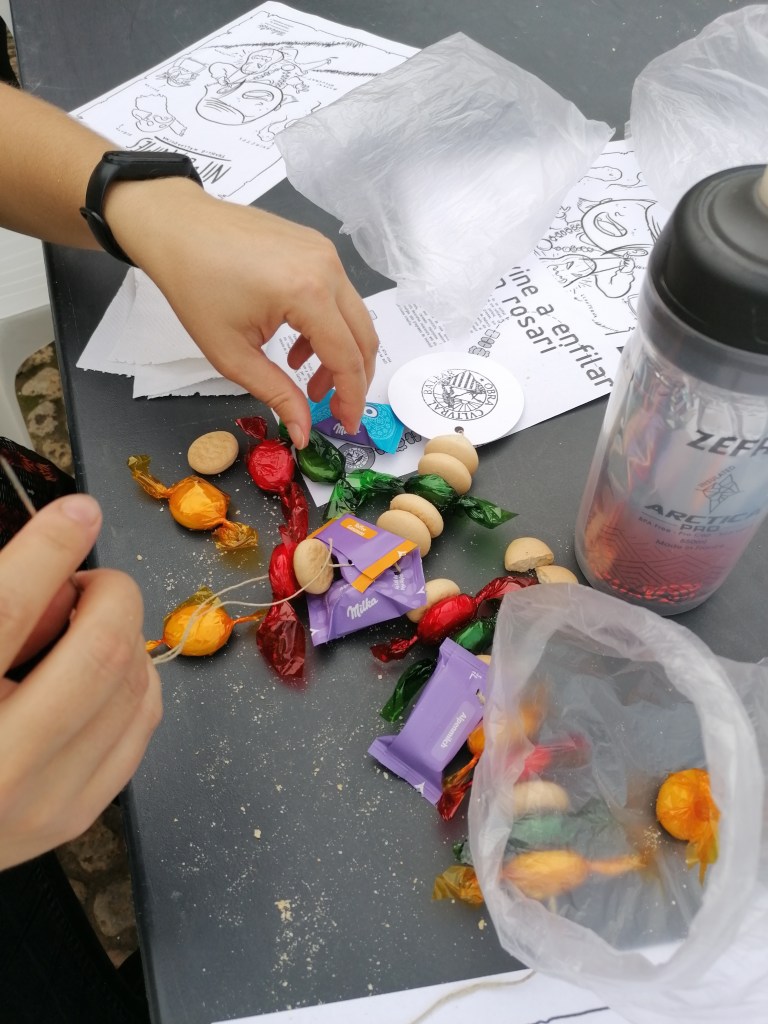 Un altre any més, ahir vàrem fer el sempre exitós taller de rosaris per Tots Sants, amb la col·laboració sempre diligent de la Biblioteca; ben atapeïts de panetons, bombons i fruita confitada, emperò sobretot amb taulades plenes d’infants pares i padrins que heu participat ben il·lusionats en aquest clàssic acte de la delegació sineuera de l’Obra Cultural Balear. Molts d’anys i no us l’acabeu tot en un dia!