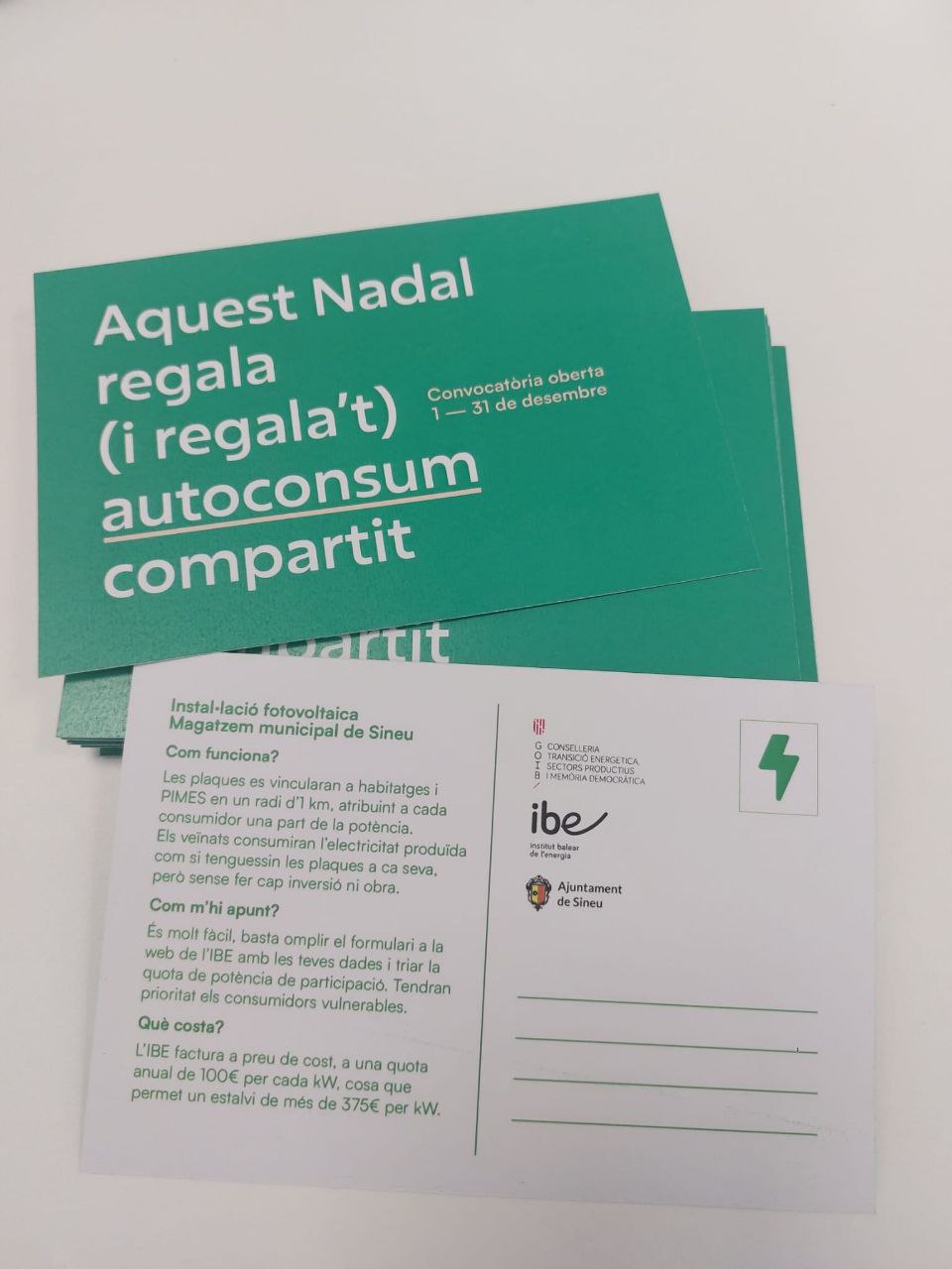 Fins a 40 llars i cinc empreses de Sineu podran abaratir la factura de la llum gràcies a l’autoconsum compartit que l’Institut Balear de l’Energia (IBE) posarà en marxa en el magatzem municipal. Així, aquelles famílies seleccionades podran accedir a energia neta produïda per plaques solars. Els usuaris pagaran el kilowatt a preu de cost i de quilòmetre zero.