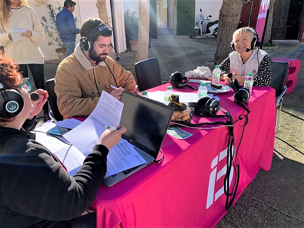 Aquest passat dissabte, el programa de cultura i entreteniment d’IB3 Ràdio La Gran Vida, conduit per Toni Jaume i Margalida Grimalt, es va fer en directe des del Frontó de Sineu. Tot i que el programa es va fer des d’aquest emblemàtic espai reobert fa uns mesos –per part de Juan Fernández, entrevistat a primera hora en el programa–, el programa va passar per altres espais de Sineu: el C.IN.E –amb Marta Barceló explicant el centre als radiooients– i l’Hospici –amb entrevista a Rocío Castro, coordinadora de Mater Misericordiae–.
