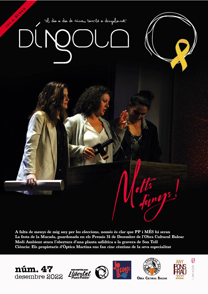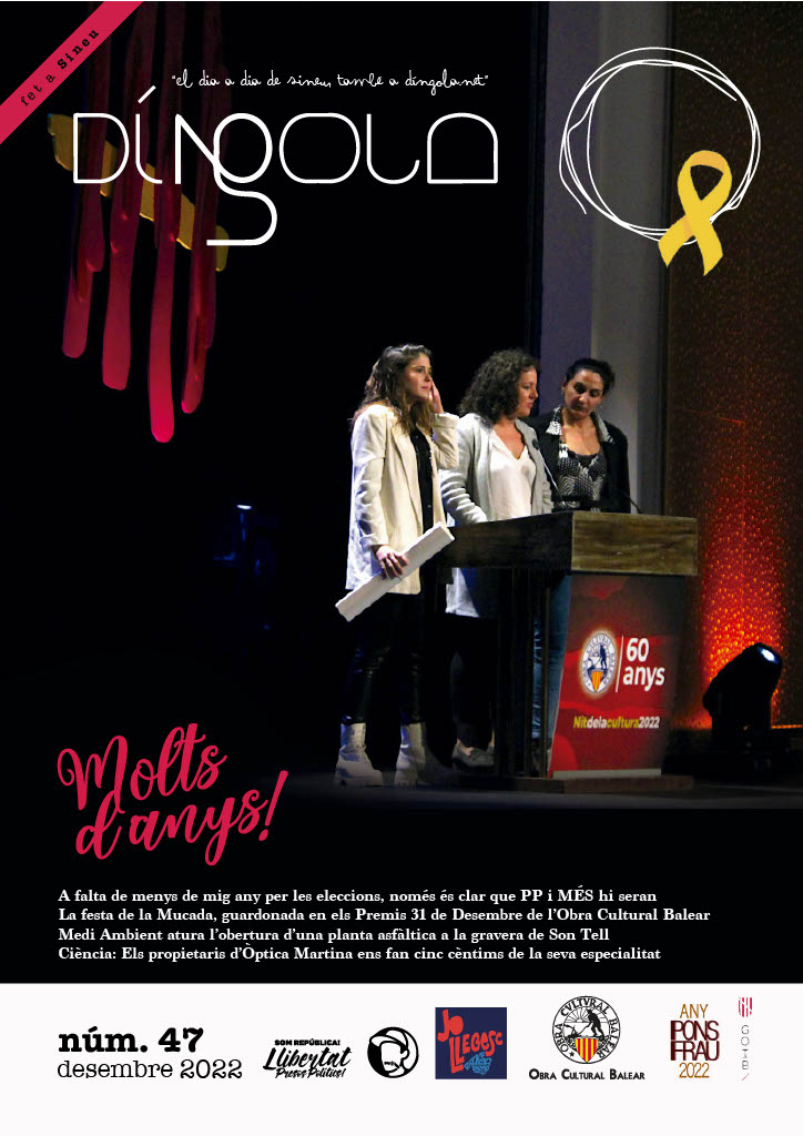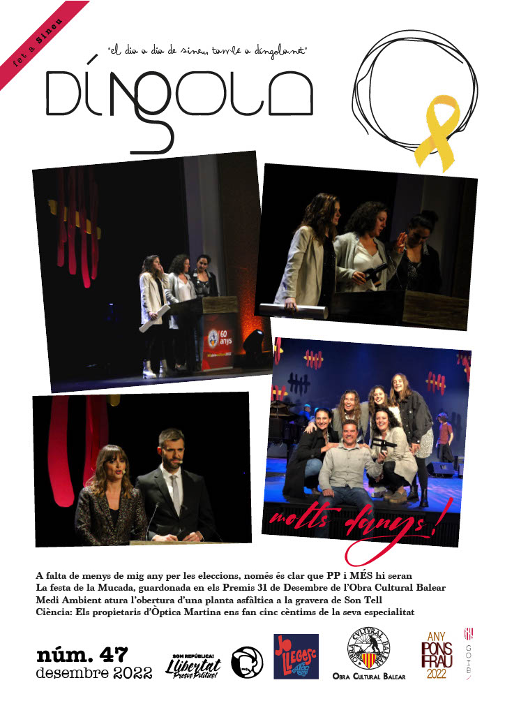 Demà tendreu a la venda el nou número de la revista DíNGOLA en paper. El darrer número de l’any. Un número en el que tendreu tota la informació sobre la actualitat política, social, econòmica, cultural i esportiva del municipi, a part d’una sèrie de reportatges ben interessants en la part de magazine de la revista: entrevista als propietaris d’Òptica Martina, la història del Frontó de Sineu, o el Premi Aina Moll de l’OCB per a la Muchal Foundation.