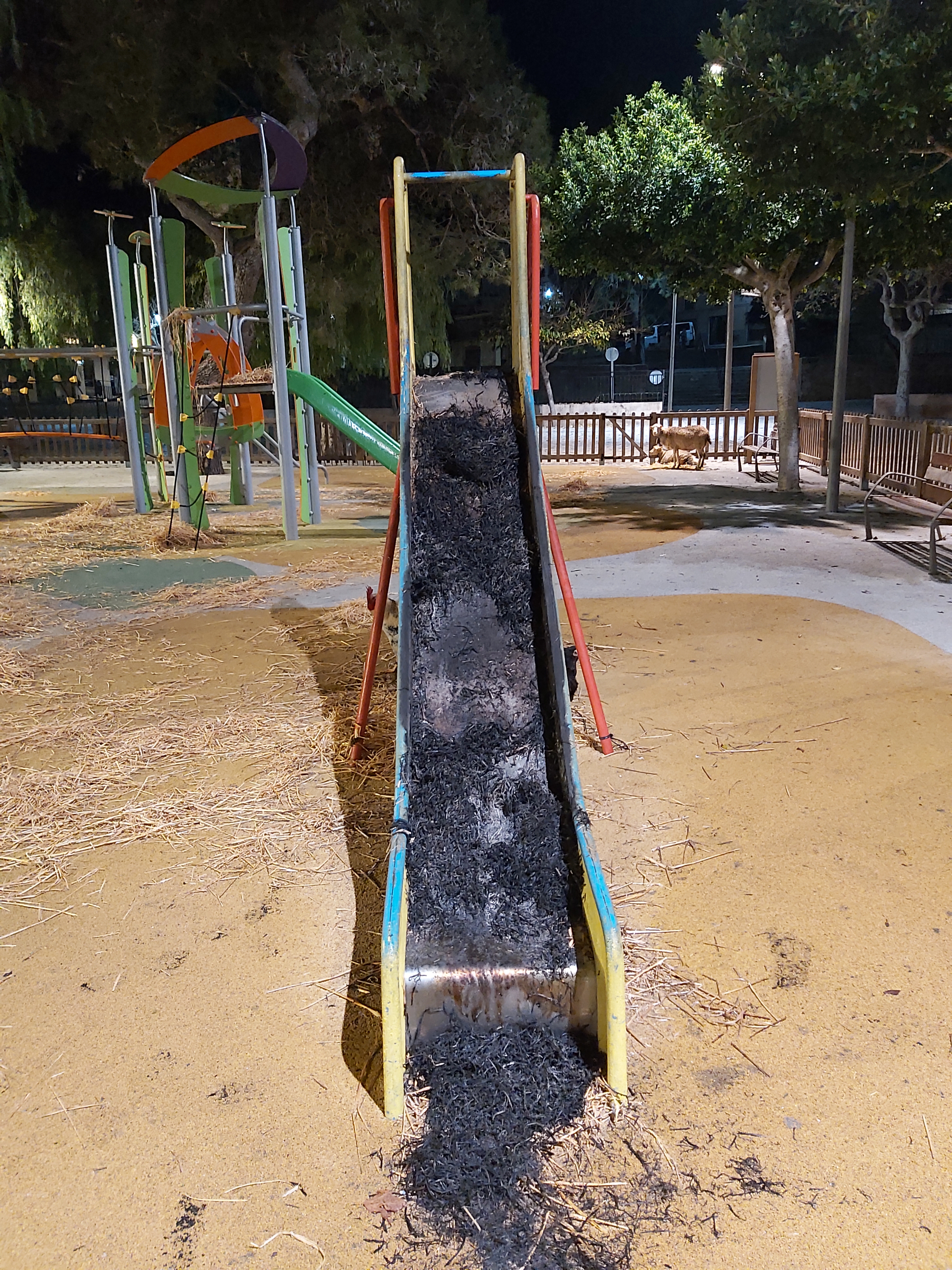 Segons informació que ha arribat a Díngola, vers les 01:30 h els bombers han hagut d’actuar al Parc Infantil des Fossar per la crema de palla. Pareix ser que s’ha fet malbé el trespol de goma allà on ha cremat la palla. L’autoria d’aquesta crema NO té res a veure amb la Quintada del 2003, segons la mateixa informació.