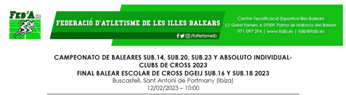Dia 12 de febrer, a Sant Antoni de Portmany d’Eivissa, es disputarà la Final Balear Escolar de Cros amb la participació de tres atletes de Sineu: Maria Gual Izquierdo (C.A. Atlas), Maria Ferriol Calafell (C.E. Total Team) i Martí Ferriol Calafell (C.E. Total Team), tots tres en la categoria Sub16.
