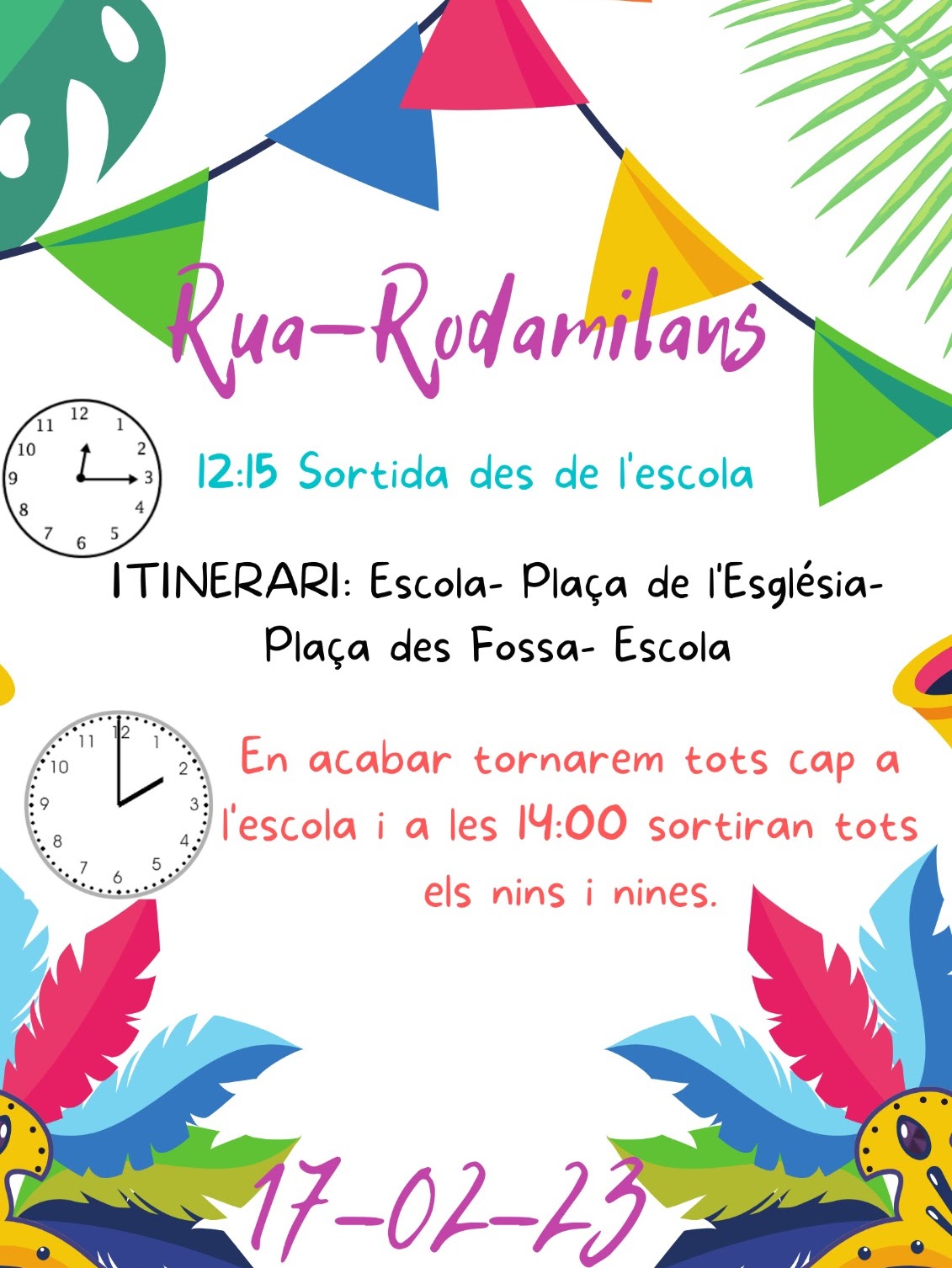 Centenars d’infants i mestres del CEIP Rodamilans estan participant ara mateix a la rueta d’enguany. Pugen cap a sa Plaça, i baixaran al Fossar, des d’on tornaran a l’escola a les 14h.