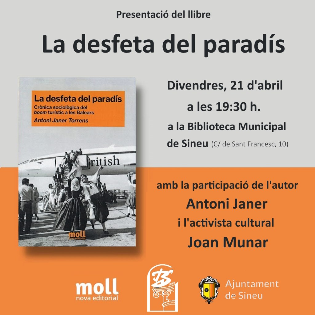 La presentació d’aquesta nova obra serà divendres 21 d’abril, a les 19.30 h, a la Biblioteca de Sineu, amb la participació de l’autor i el nostre company de Díngola, Joan Munar Lupino.