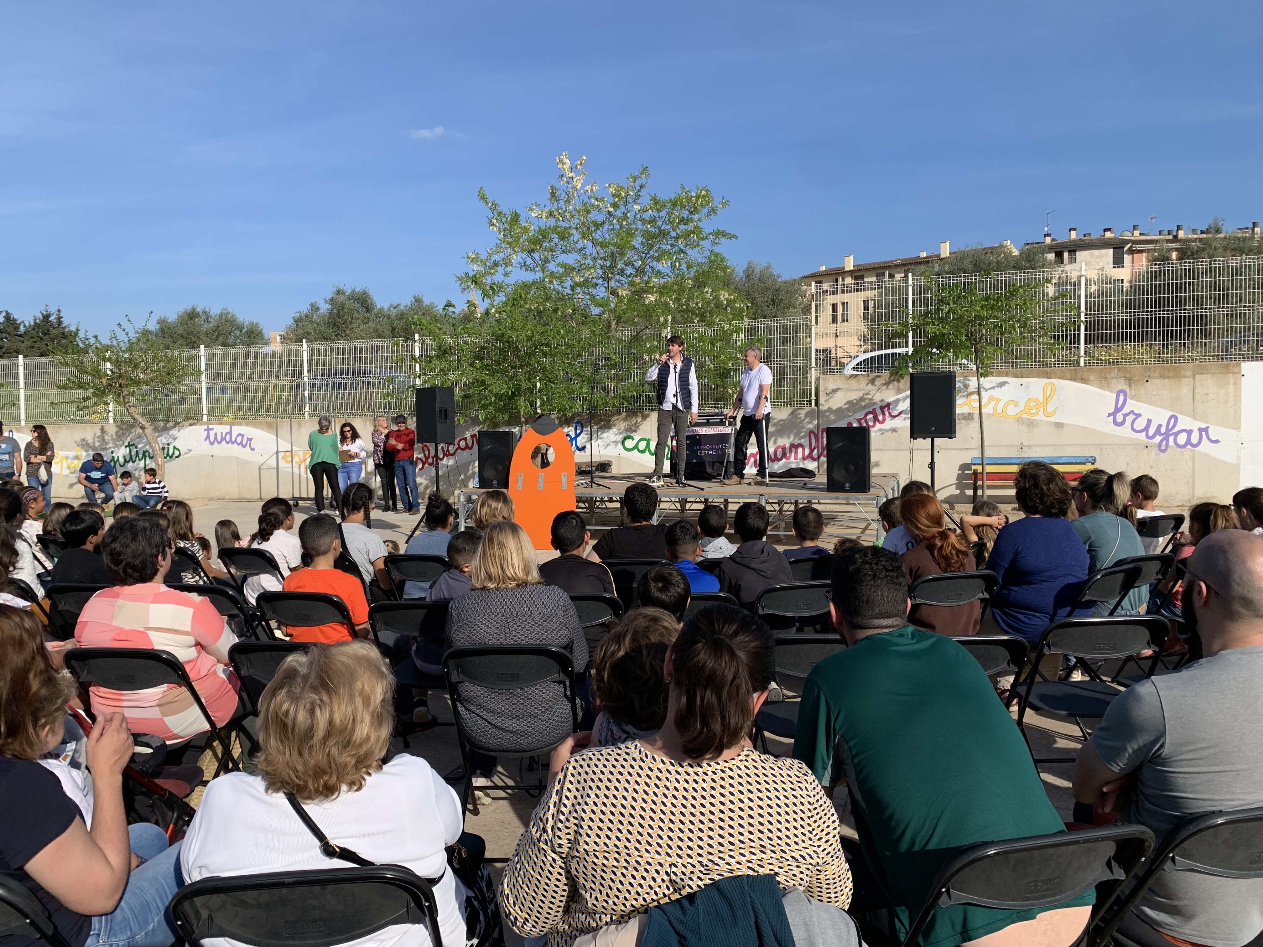 En els minuts institucionals, els infants pogueren retrobar-se amb Mestre Arnau, Arnau Mateu, el primer director de Rodamilans i que ja dirigí sa Quintana. El director actual, Joan Gual, li agraí i le reconegué la feina feta.