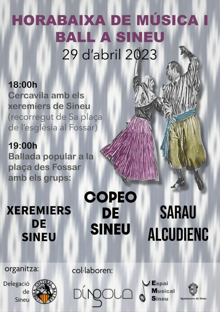 L’Obra Cultural Balear de Sineu, amb la col·laboració de Díngola, Espai Musical Sineu i l’Ajuntament hem organitzat una ballada popular -ball a plaça- amb les actuacions dels grups musicals Xeremiers de Sineu, Copeo de Sineu i Sarau Alcudienc.