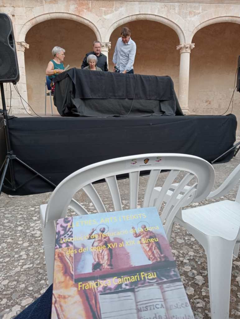 La filòloga sineuera Francisca Caimari Frau va presentar ahir vespre la seva darrera obra Lletres, arts i teixits: L’evolució de l’educació de la dona des del segle XVI al XIX a Sineu. Un acte en el qual va ser acompanyada per la nostra companya i membre de Dones d’Arrel, Maria Magdalena Alomar Malén i pel batle, Tomeu Mulet.