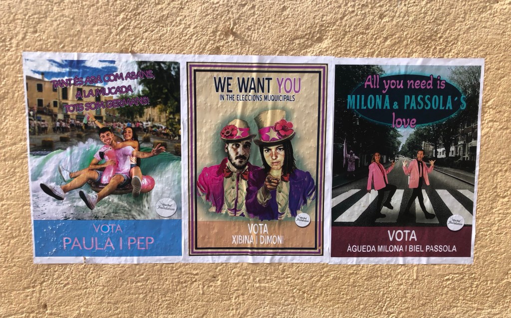Ja es veuen alguns cartells electorals com aquest, en algun lloc estratègic del poble.