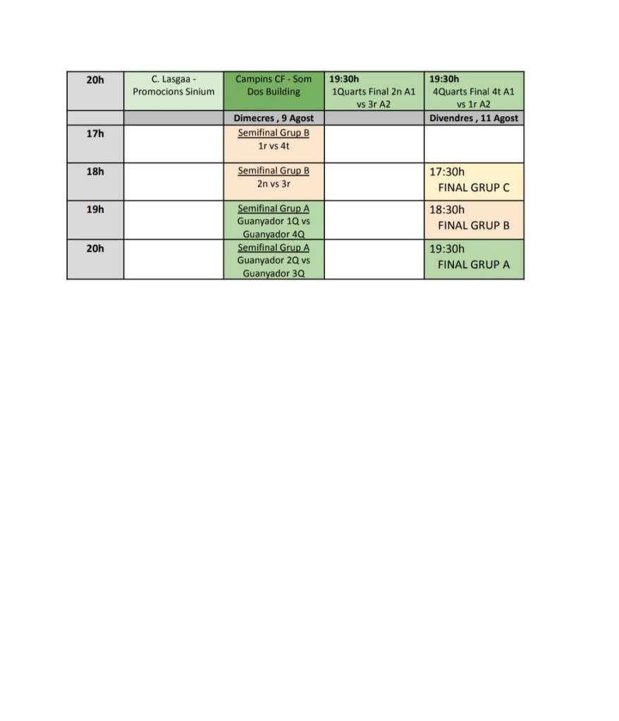 Les semifinals d’ambdues categories seran dia 9 d’agost i les finals dia 11.