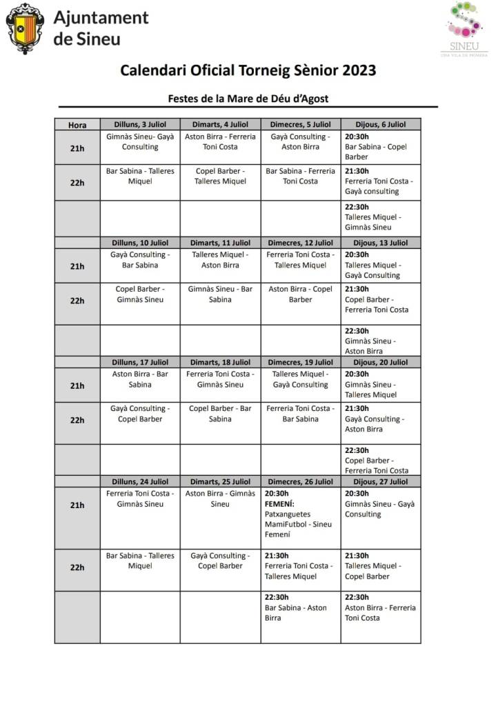 Avui, dilluns, comença el torneig de futbet infantil i sènior de les Festes d’Agost a la pista d’Es Fossar. Ja hi ha una variació a la jornada inaugural ja que el partit infantil de les 18,00 h es disputarà a les 20,00 h, degut a la retirada de l’equip infantil Ses Llimones.