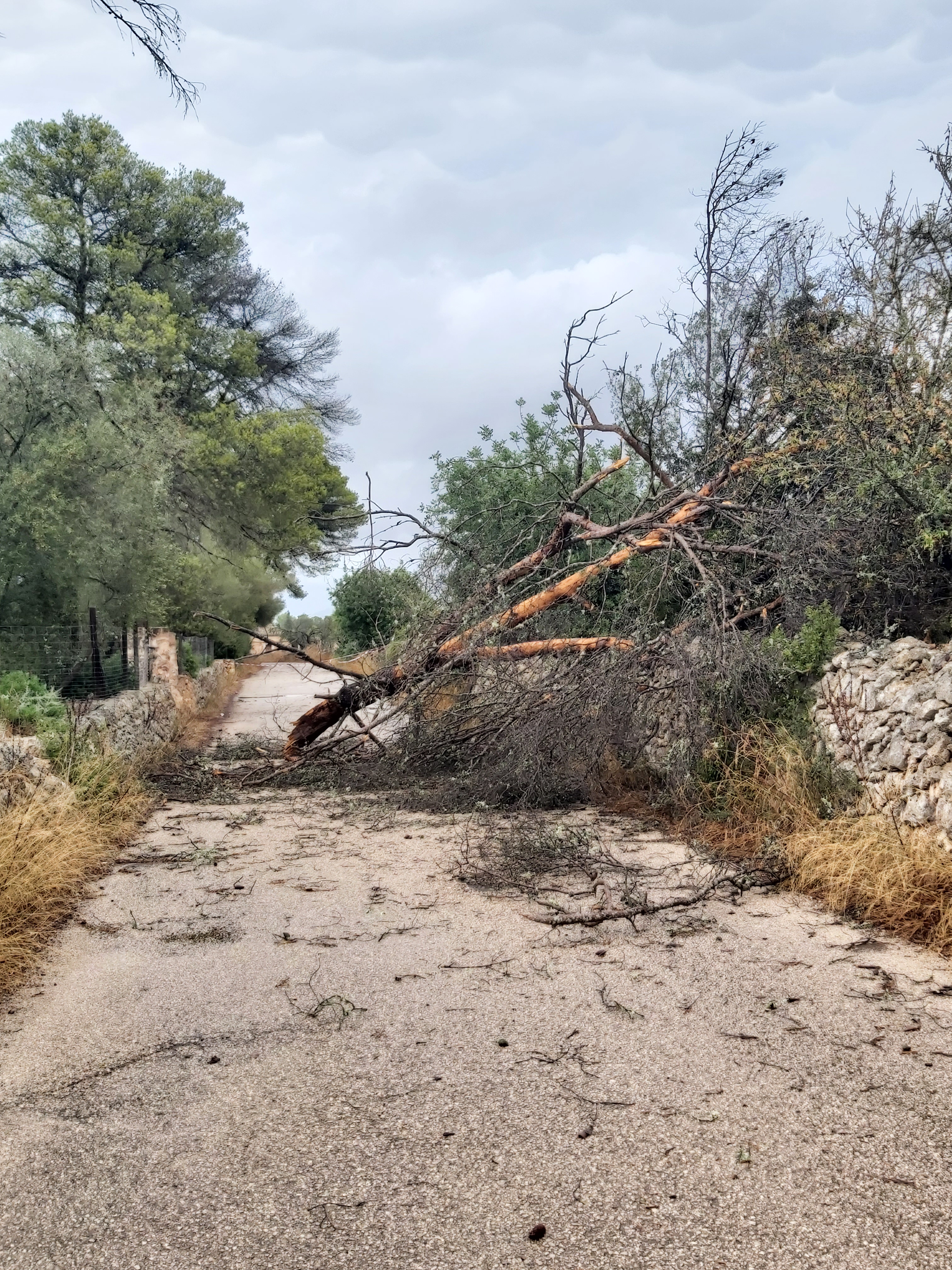 La caiguda de la soca d’un arbre enmig del camí vell de Búger, degut a la ratxa de vent d’avui matí, ha obligat a tallar el camí des de l’accés de la carretera d’Inca.