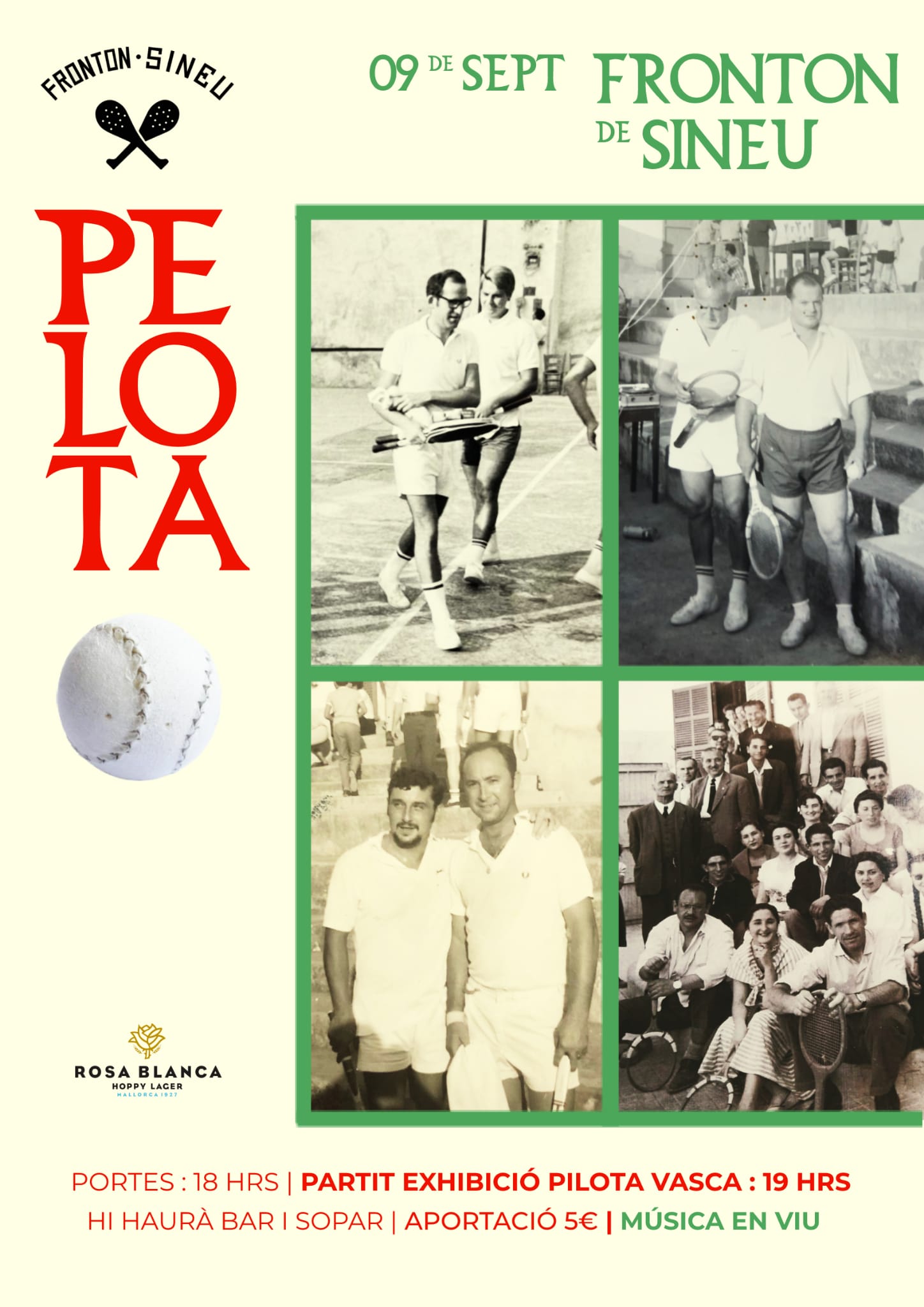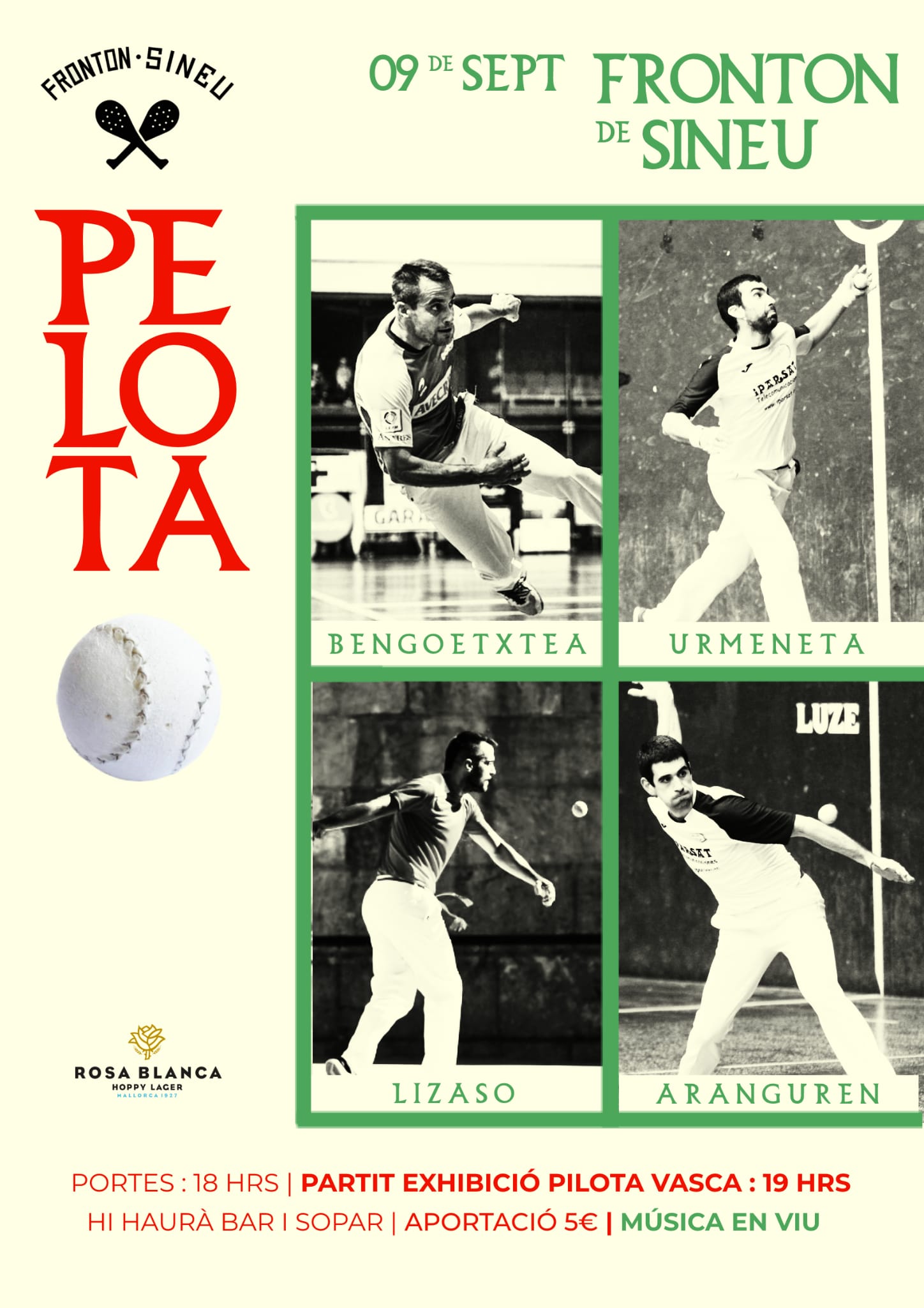 El cartell inclou una selecció de pilotaris bascs i proposa també sopar en el mateix recinte, barra i música en viu. L’obertura de portes és a les 6 del capvespre i el partit comença a les 7 . Juan Fernández, qui està al capdavant del Frontó, vol que la trobada serveixi per entroncar amb les arrels de l’espai, quan es jugava a frontó en aquest punt central de la vida esportiva, social i cultural de Sineu.