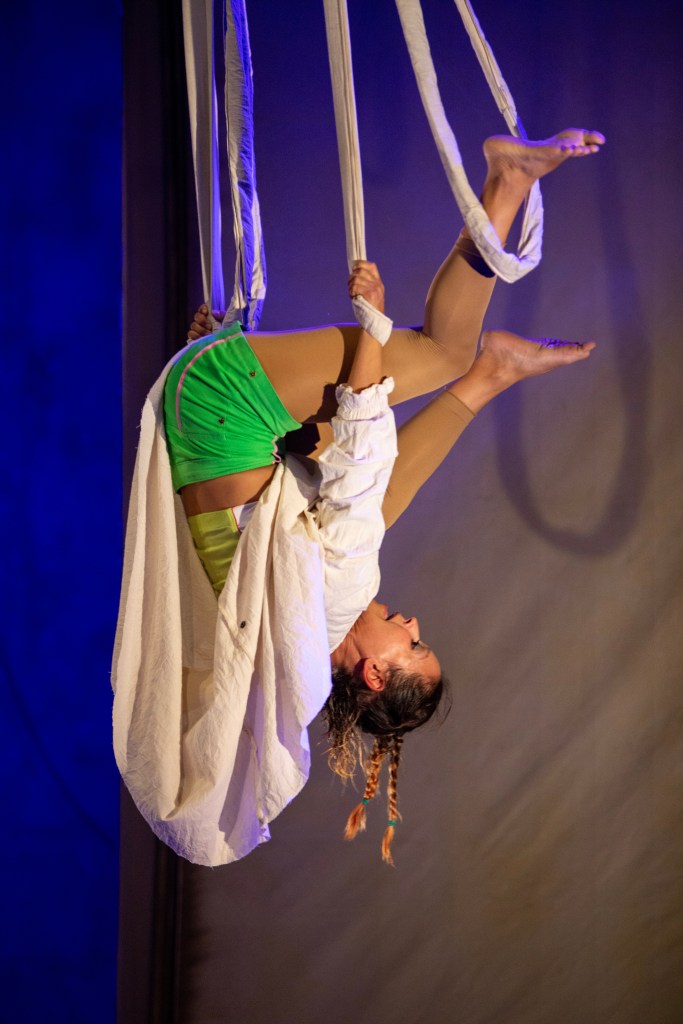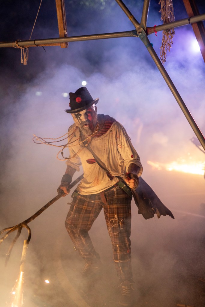 La primera de les actuacions del dissabte va ser “#Biblios”, un espectacle de circ contemporani, creat per la companyia Circ Bover -durant molts d’anys a Sineu- on l’acrobàcia, la dansa, la música i el teatre actuaren com a llenguatge per a reflexionar sobre la frivolitat dels continguts d’ús mediàtic i el distanciament social que creen les xarxes. Durant aquesta jornada, els assistents també van poder gaudir dels espectacles “Zoom”, de Moviments, o del teatre de carrer “HoHiHu”, de la companyia Farres Brothers i Cia. El país convidat de l’edició d’enguany, Croàcia, va presentar “Denuded”, de Bruno Isaković, i la mostra “C8H11NO2 2.0”, de Room 100. Sa Comuneta del Pou de’n Banys va ser l’escenari d’un dels moments més especials del festival: enmig del bosc, la Cia. Sandhamn 67 ens va traslladar directes a la seva “Absurda i titànica aproximació a la idea de la bellesa”. Mentre, els Dimonis de sa Cova des Fossar ja es preparaven per omplir de foc i fum es Fossar de Sineu.