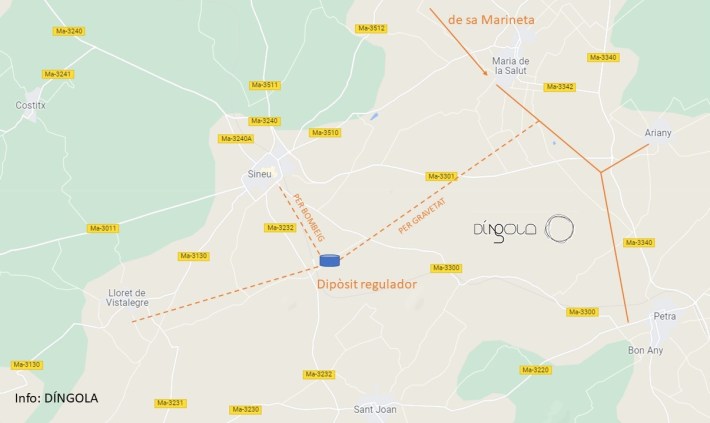 Del problema de l’aigua a Sineu n’hem informat de manera exhaustiva tant a DíNGOLA en paper com en aquest digital. Una de les necessitats per abastir d’aigua potable el Pla de Mallorca consisteix en la construcció d’un dipòsit de regulació a Sineu, que rebrà aigua procedent del dipòsit de Maria de la Salut a través d’una canonada que ha de fer l’Agència Balear de Qualitat de l’Aigua (Abaqua).