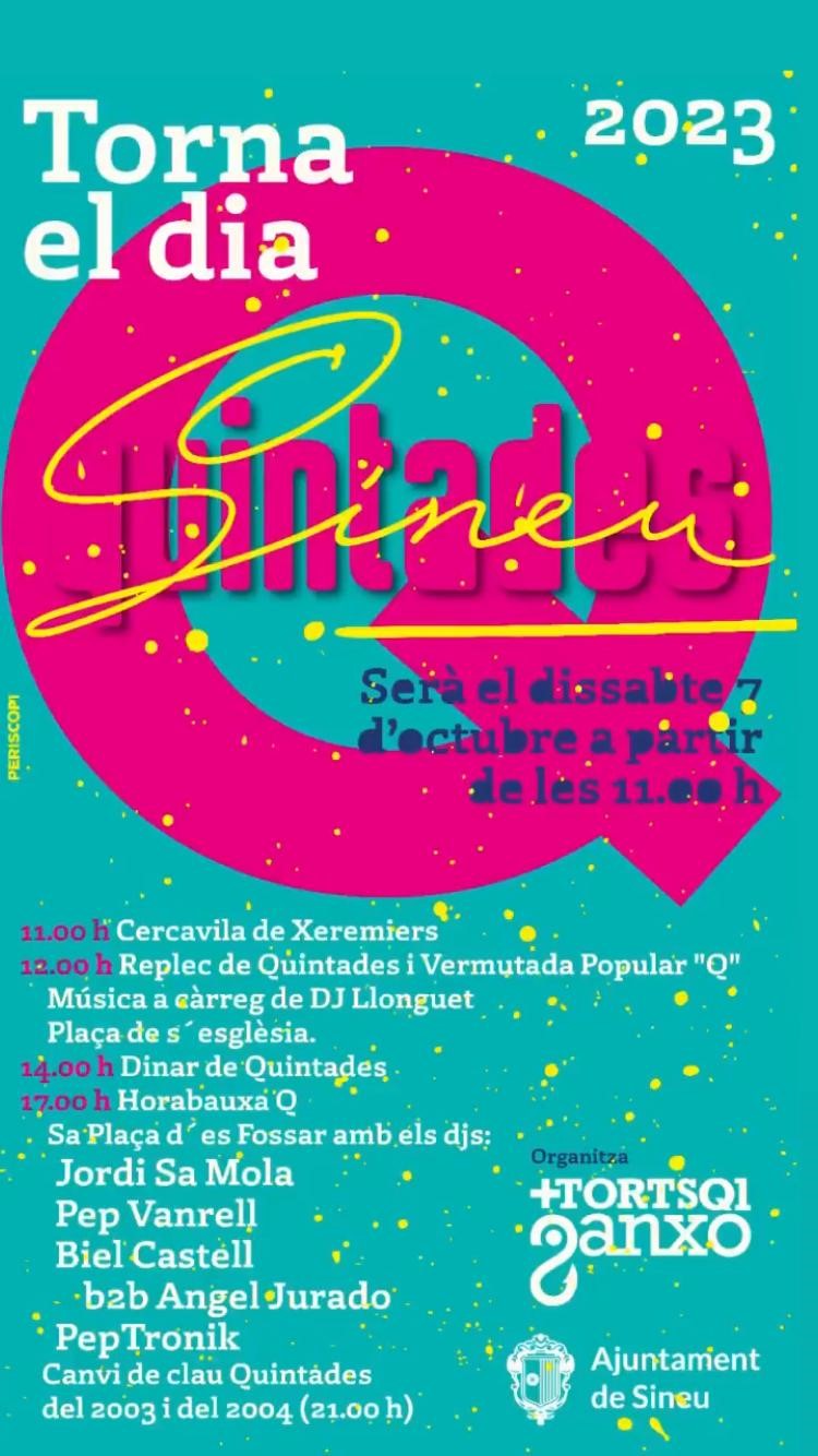 La festa de les quintades, el Dia Q, s’havia consolidat entre les festes anuals no oficials de Sineu. Va tenir una tendència in crescendo els darrers anys, només rompuda pel dol de l’any 2018 pel desastre de les torrentades del Llevant mallorquí, que va fer que la festa d’horabaixa es suspengués. Després la pandèmia també la va eliminar completament i l’any 2020 no hi va haver dinars de quintades i el 2021 es va fer baix d’un cert control. L’any passat va tornar organitzar-se la festa normalment.