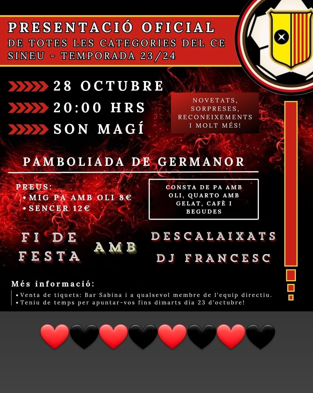 Per aquest acte, el club anuncia novetats, sorpreses, reconeixements i molt més. Després hi haurà una “pamboliada” de germanor i un fi de festa.