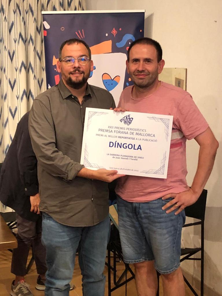 DÍNGOLA va ser premiada dissabte passat A la 22a edició dels Premis Periodístics de la Premsa Forana de Mallorca.