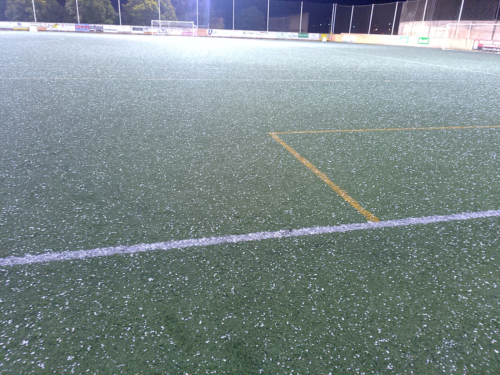 La calabruixada ha vingut acompanyada d’un llamp que ha afectat al partit de la lliga autonòmica femenina que es disputava a Son Matgí entre el CE Sineu i el CD Manacor. El llamp ha apagat els llums del camp i s’ha hagut de suspendre el partit quan faltaven 12 minuts pel final. Dimecres s’hauran de disputar aquests minuts.