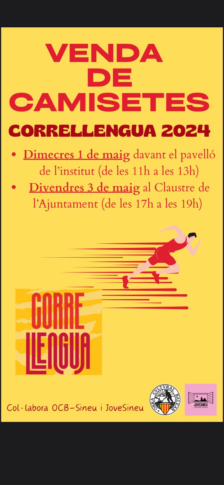 Per això, demà dimecres i divendres hi haurà una paradeta per a la venda de les camisetes del Correllengua. El preu de venda és de 5,00 €.