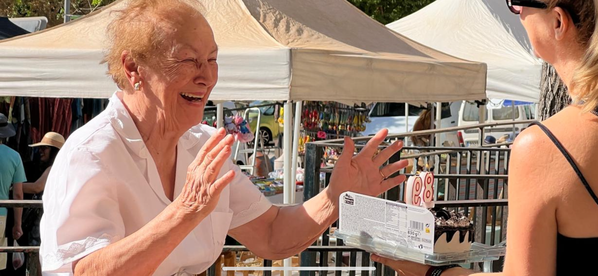 Sorpresa per a madò Banyeta de sa Pobla, venedora de bunyols al mercat de Sineu, que avui fa 89 anys