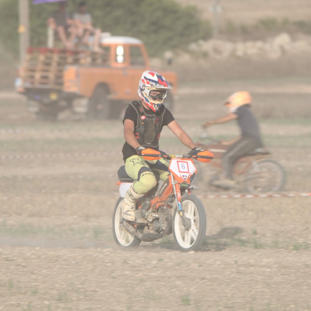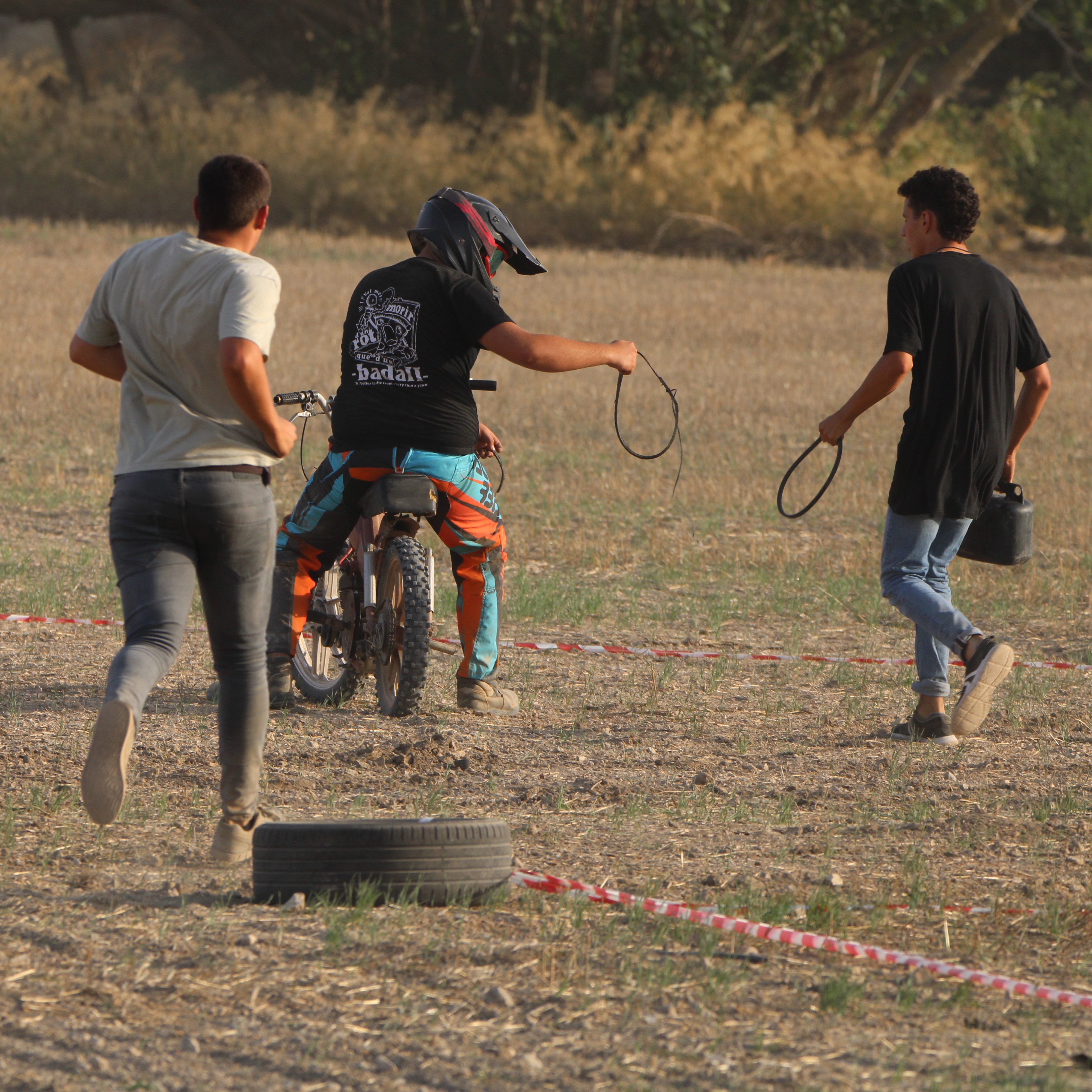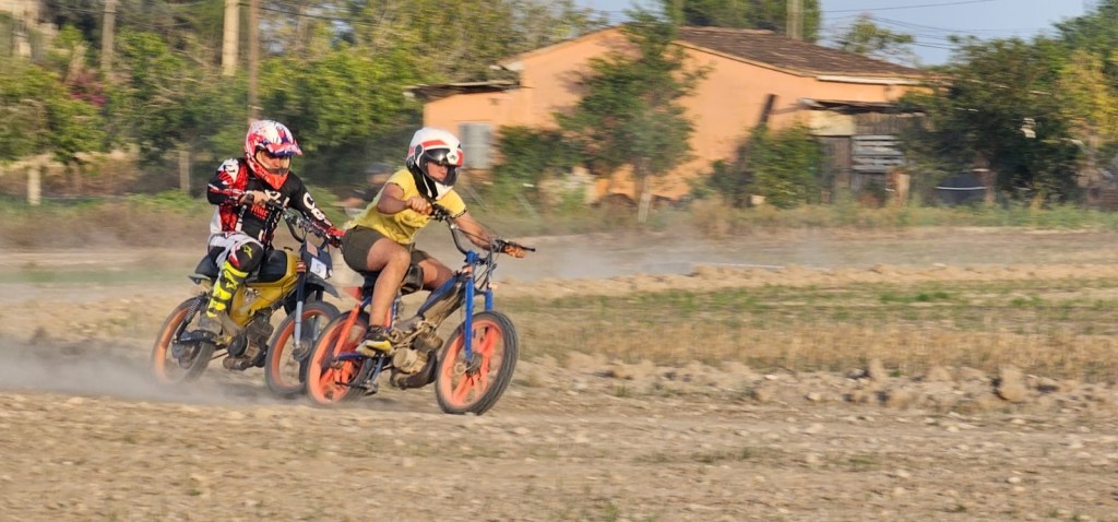En aquests moments té lloc l’exhibició de mobilettes que s’havia de celebrar dissabte passat en el marc de les festes patronals, però que va ser canviada de dia per les condicions del terreny després dels aiguats que va fer els dies abans. Renou i pols omplen ara mateix el camp d’en Pineta.