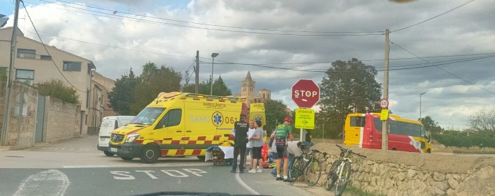 Fa uns minuts ha ocorregut un accident a l’encreuament del vial amb la carretera de Sant Joan. El conductor d’un cotxe s’ha despistat i ha tirat enlaire un ciclista. Ha fet acte de presència la Policia Local i una ambulància medicalitzada. Algun testimoni ha dit que el ciclista no pareixia en estat greu.