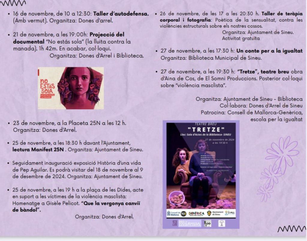 Demà, dissabte 16 de novembre, comencen a Sineu els actes commemoratius alhora que reivindicatius del 25 de Novembre; Dia Internacional per a l’Eliminació de la Violència contra les Dones.