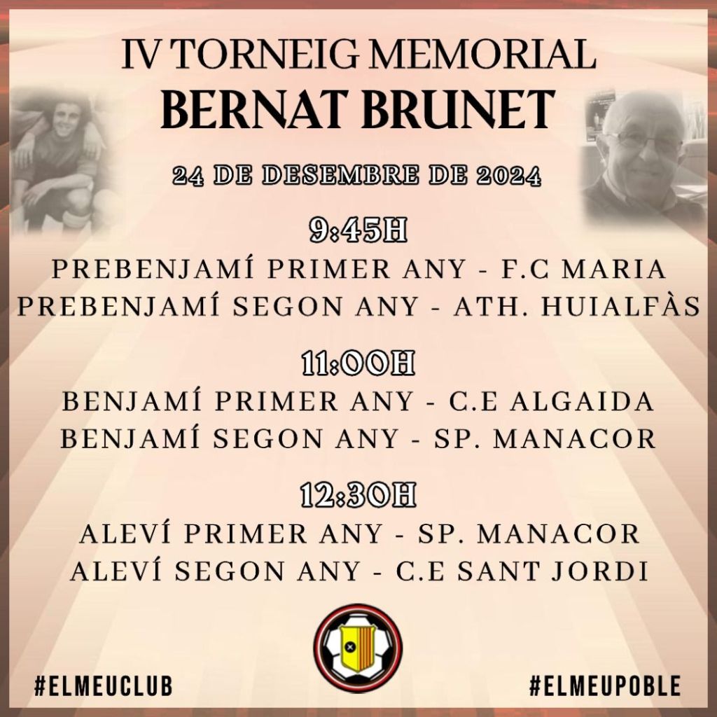 Demà, dimarts, es disputarà el IV Torneig Bernat Brunet de futbol base, en homenatge a Bernat Alzamora Brunet.