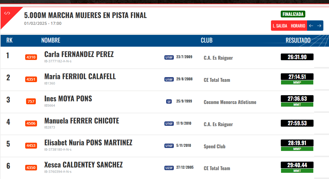 En la modalitat dels 5.000 metres marxa, l’atleta sineuera, Maria Ferriol Calafell (C.E. Total Team), es va proclamar subcampiona, aconseguint la seva millor marca personal (27:14.51).