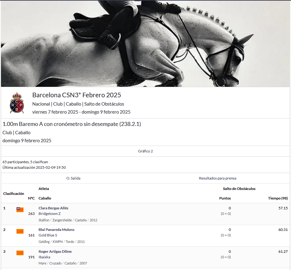 La jove amazona sineuera, Clara Bergas Allés, ha estat la brillant guanyadora a l’alçada d’1 metre. Aquesta prova ha comptat amb 65 participants. Clara ha muntat el cavall Bridgetown Z.