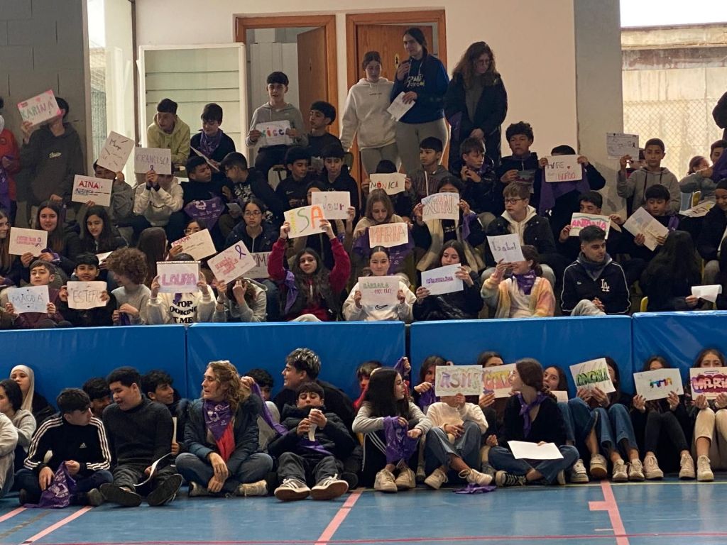 Els participants han lluït els mocadors liles, símbol de la Dona, i tots mostraven un full amb el nom d’una dona a qui estimen. A primera hora ja havien llegit el manifest preparat pels mateixos alumnes per iniciar els actes reivindicatius.