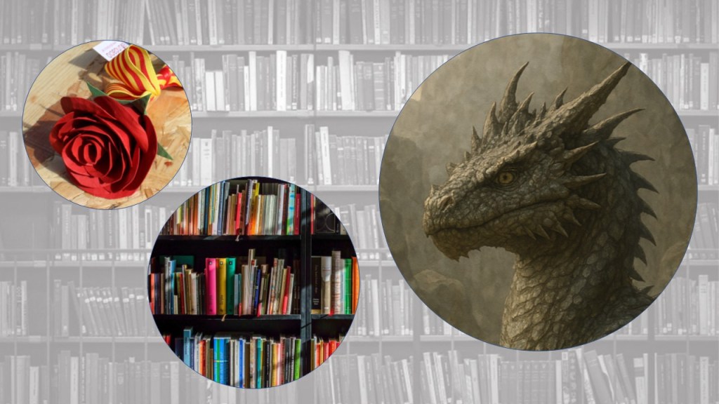 La Diada de Sant Jordi és una festa que se celebra el 23 d’abril, amb diferents components com ara la celebració del Dia del Llibre i, a molts llocs dels Països Catalans, el costum de regalar una rosa vermella a la parella o persona desitjada (encara que també es fa entre amics, familiars, etc.). Llibres i roses, símbols de la cultura i l’amor.