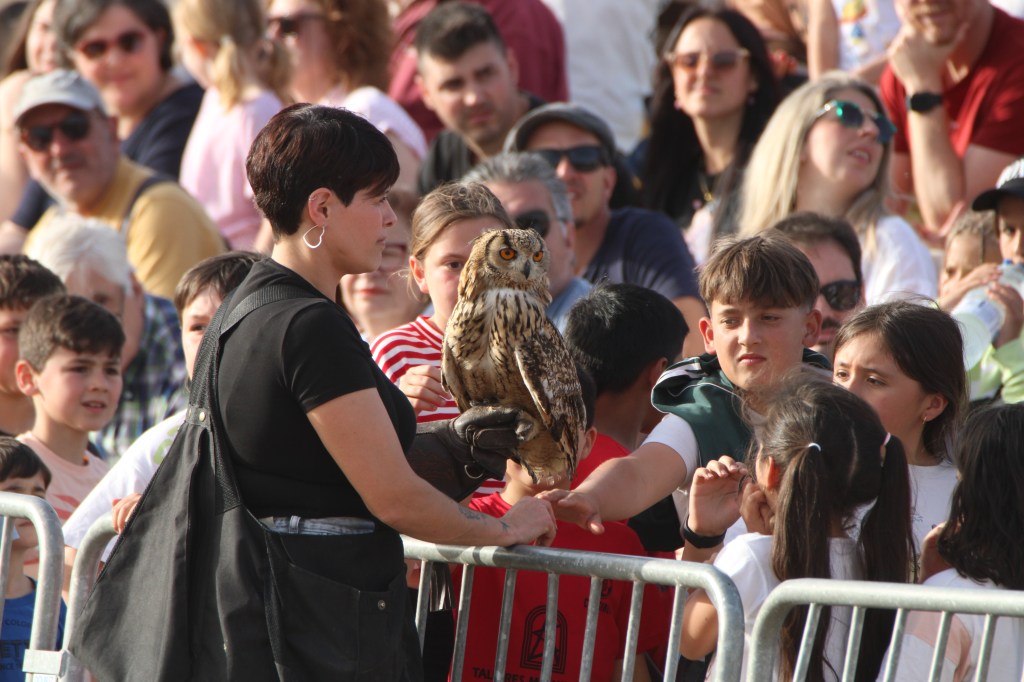 Els esdevenients programats al camp d’en Pineta no han deixat ningú indiferent. Una de les estrelles d’enguany, a la fira, és l’exhibició i mostra equina. Per si no n’hi havia prou d’animals, enguany s’ha repetit la mostra de falconeria i aus rapinyaires, tot i que s’ha mogut des de l’aparcament del Pou Llavoner al camp d’en Pineta. Les grades instal·lades per a l’ocasió s’han omplert de públic tot l’horabaixa.