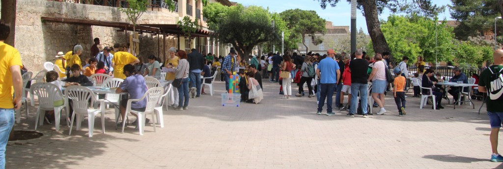 Les matemàtiques es feren visibles i mostraren com són de presents en la vida quotidina de qualsevol persona, com havia avançat DíNGOLA en aquest post (fes clic). Una activitat, Matemàtiques al carrer, programada per la Societat Balear de Matemàtiques (SBM-XEIX) i la Federación Española de Sociedades de Profesores de Matemáticas (FESPM), amb la col·laboració de l’Ajuntament de Sineu, ahir matí va aplegar una munió d’infants, adolescents, pares i professors, a es Fossar. L’activitat va comptar amb l’ajuda d’un bon grup de voluntaris: alumnes i docents del CEIP Rodamilans i l’IES Sineu, socis i amics de la SBM-XEIX, graduats en matemàtiques procedents de diversos àmbits, etc.