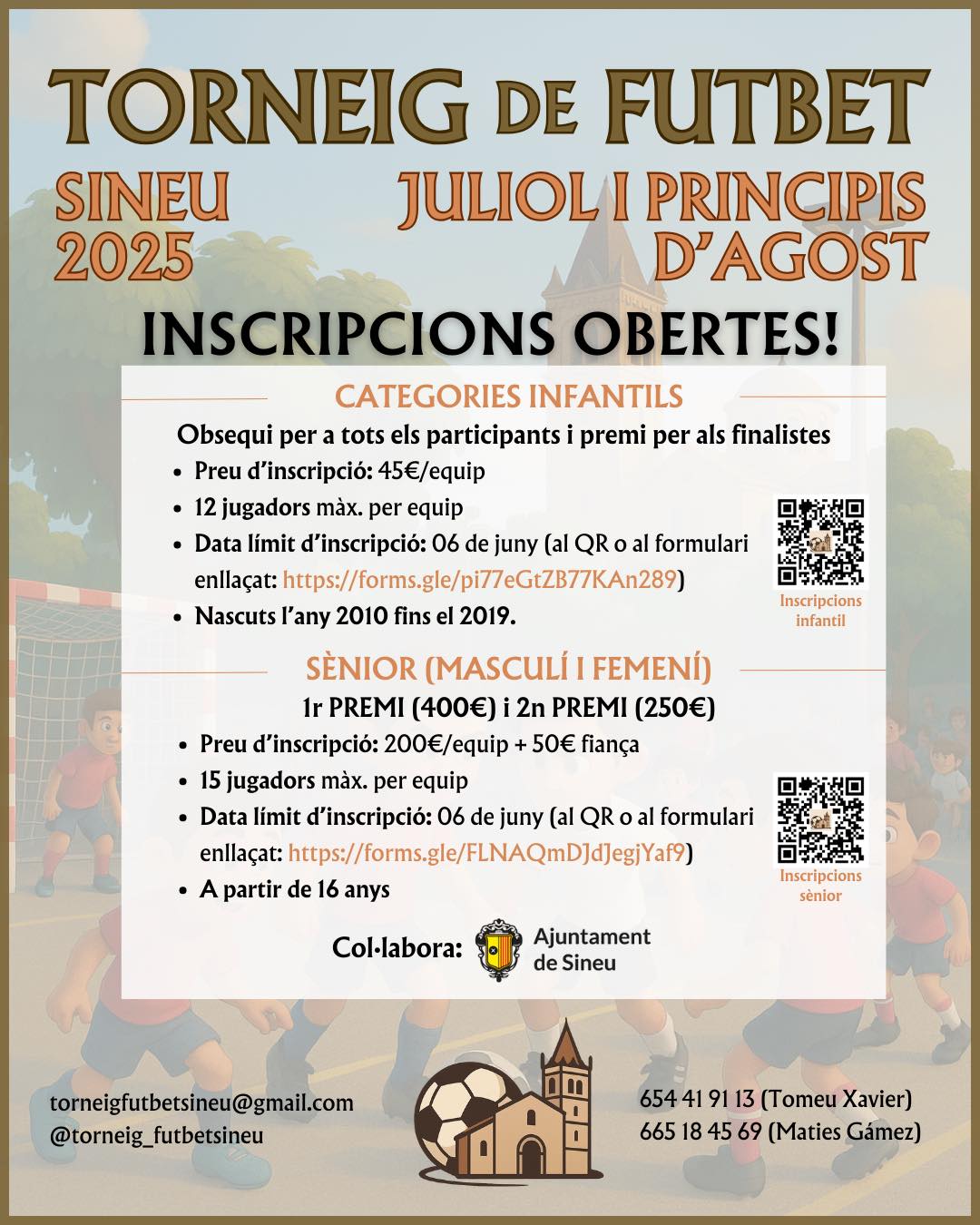 Ja està oberta la inscripció al torneig de futbet de l’estiu en motiu de les Festes d’Agost, tant per la categoria infantil com sènior.
