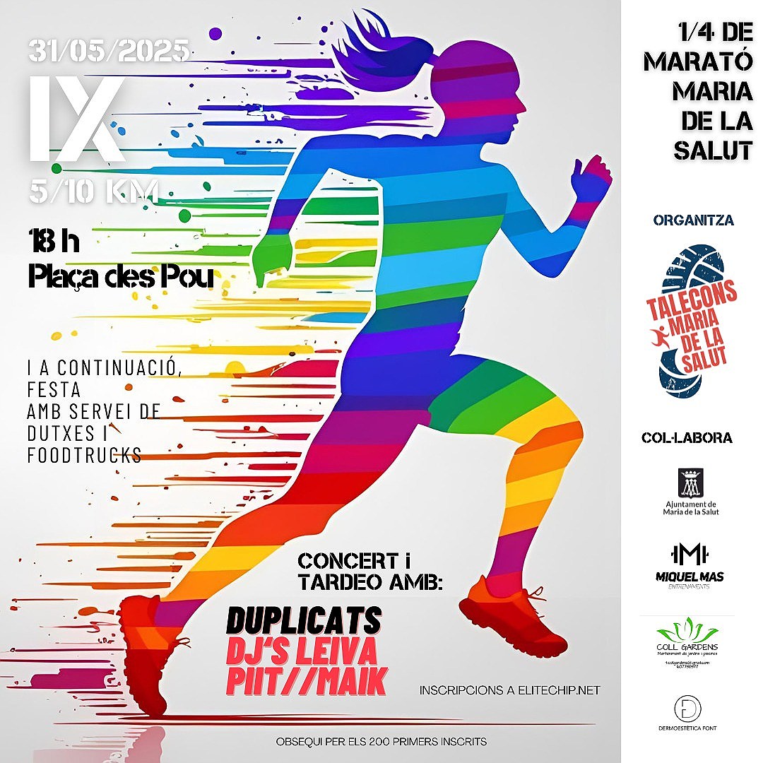 Dissabte es va disputar a Maria de la Salut la IX edició del 1/4 de Marató. També es va disputar la prova dels 5 quilòmetres. La sortida i l’arribada estaven situades a la Plaça des Pou i l’organització va ser del club local Talecons a peu.