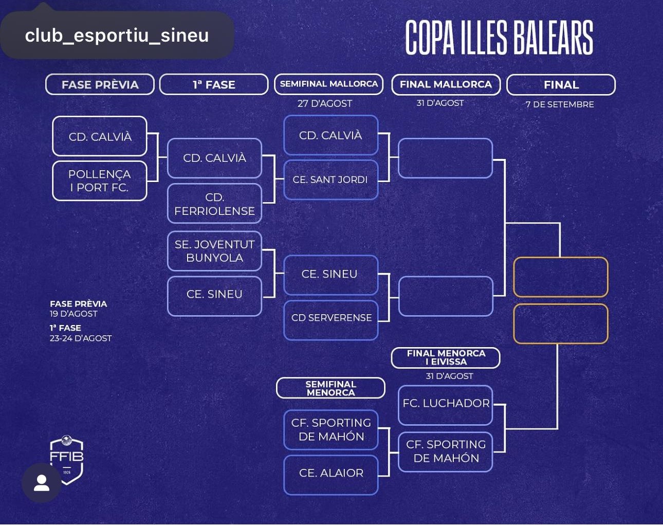 Amb aquest resultat, diumenge dia 31 a les 19,30 h, es disputarà al camp de Son Magí la final de Mallorca de la Copa Illes Balears entre el C.E. Sineu i el Sant Jordi A, també a partit únic. El guanyador s’enfrontarà en la gran final de la Copa contra el guanyador del partit de la final Menorca-Eivissa, que disputarà el FC Luchador d’Eivissa i l’Sporting de Mahón de Menorca. El guanyador entrarà al sorteig de la Copa del Rei.