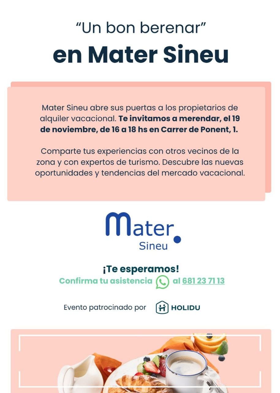 Mater s’ha desvinculat de l’organització d’un berenar informatiu amb potencials propietaris que voldrien llogar en règim vacacional. Fa uns dies, la plataforma alemanya Holidu publicava aquest anunci:
